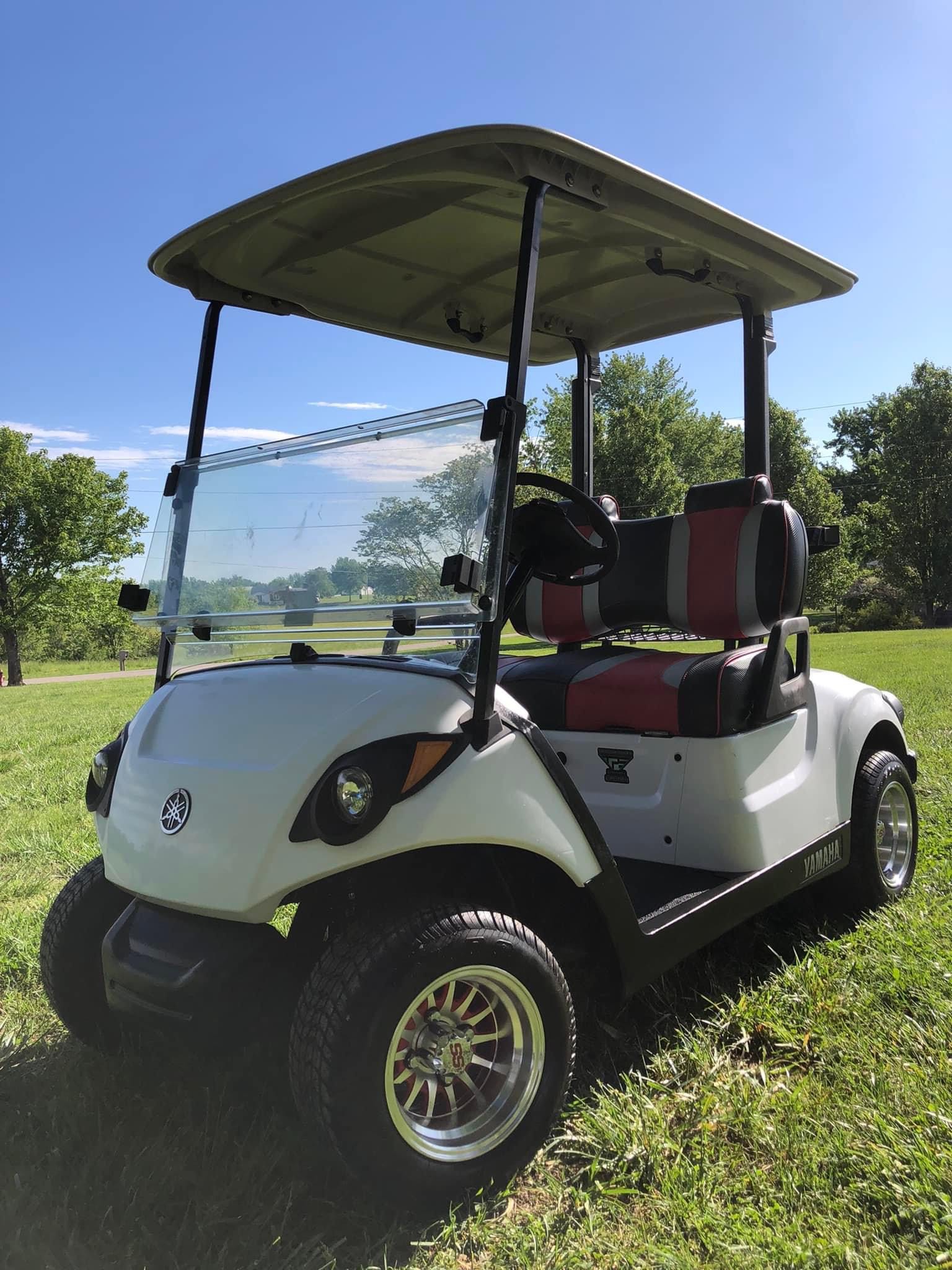 2018 Yamaha drive2 gas! Golf course ready new custom premium front seats, new 10” wheels and tires, new headlights/ tail lights, flip down windshield, serviced and ready to roll! $3,050 each